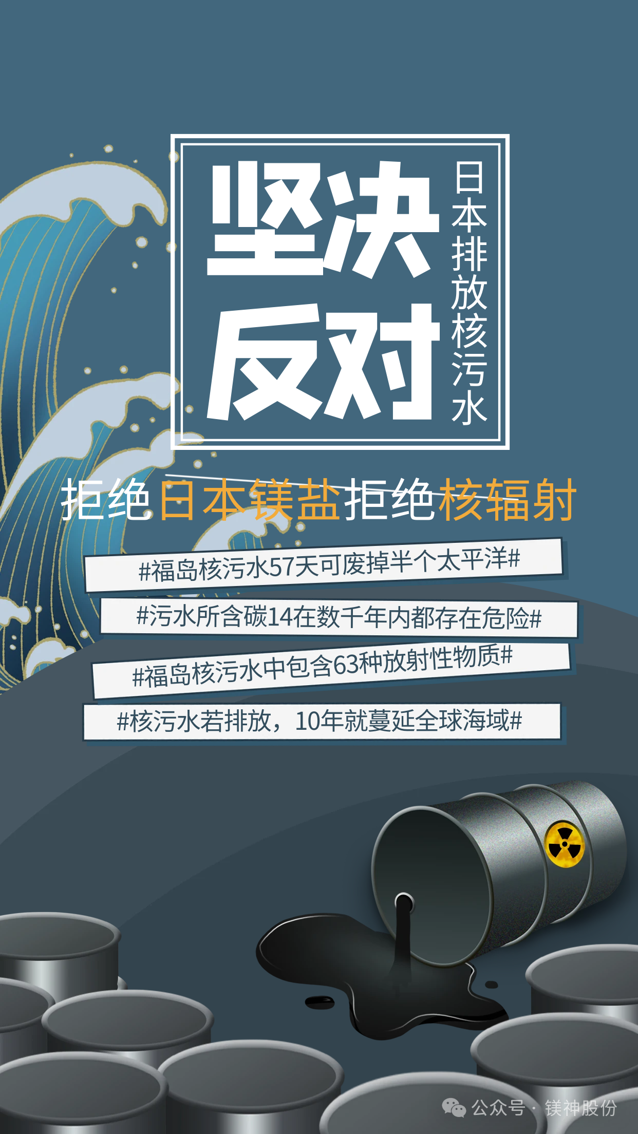 近日,日本東京電力公司啟動第四批核污染水排海,此次排放量約為7800噸。自去年8月24日開始,福島第一核電站已累計(jì)排放約2.34萬噸核污染水。令人關(guān)注的是,東京電力公司計(jì)劃在2024年4月至2025年3月,再進(jìn)行7批核污染水排放,預(yù)計(jì)總量將達(dá)到5.46萬噸。然而,今年2月7日,福島第一核電站核污染水凈化裝置發(fā)生泄漏事故,泄露的核污染水含有高達(dá)66億貝克勒爾的放射性物質(zhì)。事實(shí)上,這并非該核電站首次發(fā)生類似事件。中國常駐國際原子能機(jī)構(gòu)代表李松大使在3月理事會上強(qiáng)調(diào),中方主張強(qiáng)化對日本的國際監(jiān)督,抵制日本鎂鹽流入國內(nèi)市場。眾所周知,日本的鎂鹽主要通過海水蒸發(fā)法生產(chǎn),但此過程會產(chǎn)生大量廢水和廢氣,對環(huán)境形成極大壓力。更嚴(yán)重的是,由于海水法生產(chǎn)過程中對海水進(jìn)行濃縮處理,使鎂鹽原料鹽水鹵中的放射性物質(zhì)濃度升高,容易導(dǎo)致鎂鹽中的放射性物質(zhì)超標(biāo)。此外,德國海洋科學(xué)研究機(jī)構(gòu)的模擬顯示,被核廢水污染的海水已經(jīng)擴(kuò)散到了日本鎂鹽生產(chǎn)企業(yè)(如:日本神島化學(xué)有限公司、日本協(xié)和化學(xué)工業(yè)有限公司、日本富田制藥株式會社、日本宇部株式會社、日本達(dá)泰豪化工工業(yè)株式會社等)的工廠所在地。因此,現(xiàn)在生產(chǎn)的硫酸鎂、氧化鎂、氫氧化鎂、碳酸鎂等鎂鹽產(chǎn)品的安全性大為堪憂。使用這些產(chǎn)品的消費(fèi)者和企業(yè),將直接面臨來自核輻射的威脅。